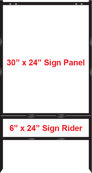 • Main signs bolt in or slide into frame and are held by 8" clip. Bottom riders only slide into the frame and are held by 4-inch clips.